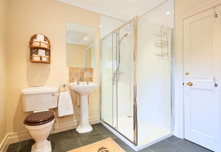 Upstairs, Forester’s Cottage has been tastefully decorated and furnished to match the high standards of the lower floor. It offers two bedrooms: a lovely double bedroom with a super king-size bed, convertible into two singles, and a slightly smaller bedroom with a double bed. There is also a thoughtfully designed upstairs bathroom with a bath and handheld shower.