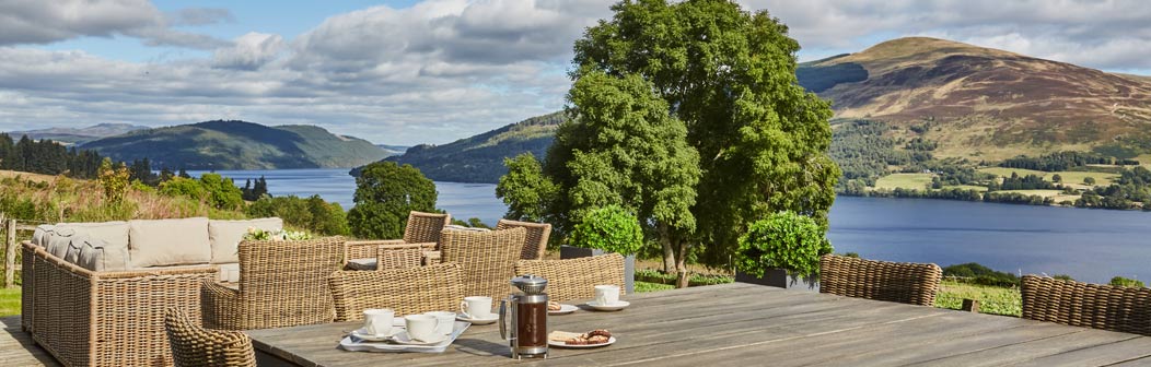 From its north shore rise the slopes of Ben Lawers and here, in a magnificent setting between mountain and loch, is Tigh na Eglaise. The Gaelic name may resonate with French speakers, with Eglaise being very close to 'eglise' and the house was once the Manse for the church serving the tiny hamlet of Lawers.