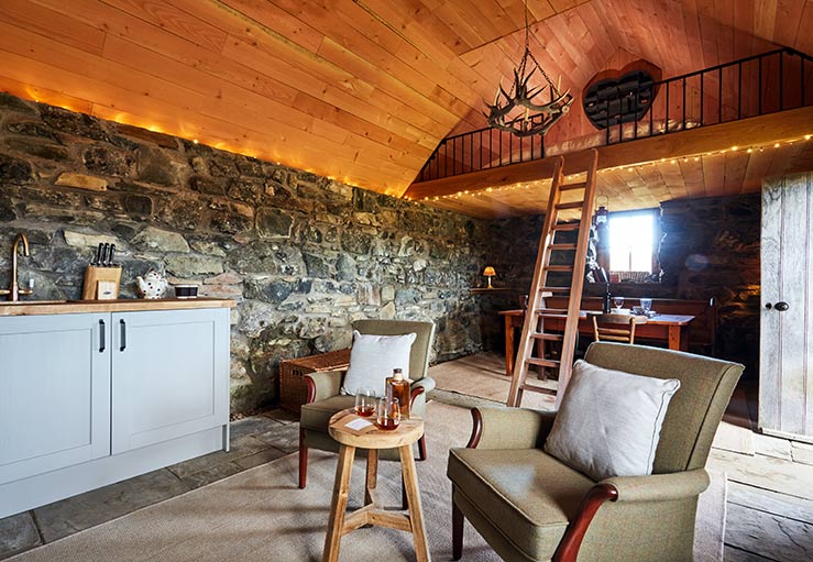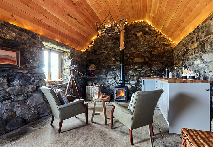 A traditional bothy, you will find everything in one cosy room, apart from the loo with a view! This tastefully designed space has everything you need to relax and unwind after a day exploring its stunning surroundings