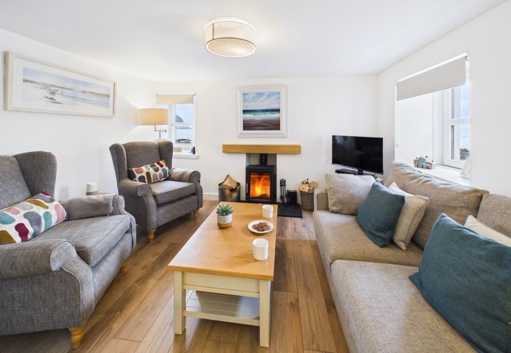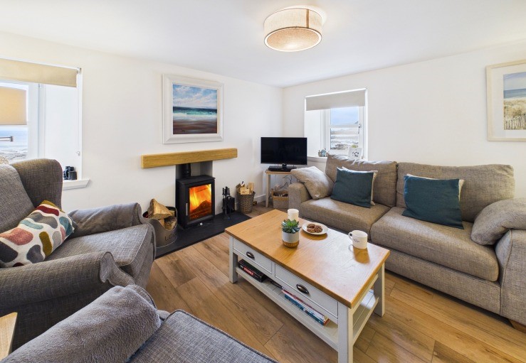 There is a small-decked patio area to the rear and table and chairs for use at the front of the cottage to watch the sunsets, wildlife or the ever-changing sea. Parents should be aware that there is an unguarded drop from the seafront to the beach below.