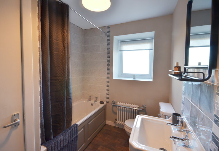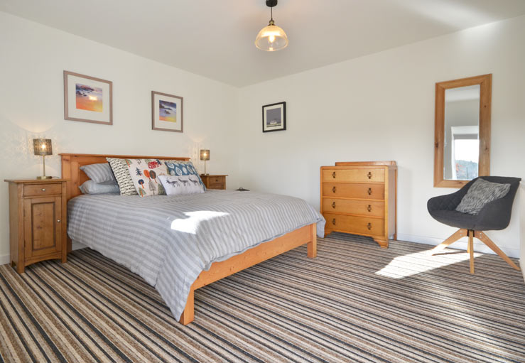 The attractive double bedroom has a king-size bed to spread out on and a full length window so the views can be admired even from bed. In the smart twin bedroom the beds can be zipped together to make a super king-size bed. The cottage is laid out all on one level and the bedrooms share a family bathroom that has a bath and a shower over.