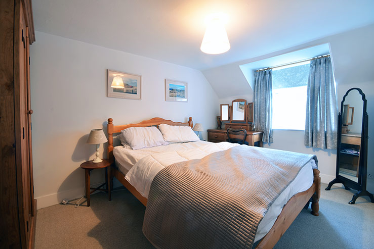 On the second floor are the well-furnished bedrooms that are warm and inviting with slightly coombed ceilings and dormer windows. The two rooms share a family shower room. Outside there is a lovely little decked terrace extension where guests can relax and enjoy the sea view.