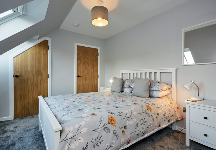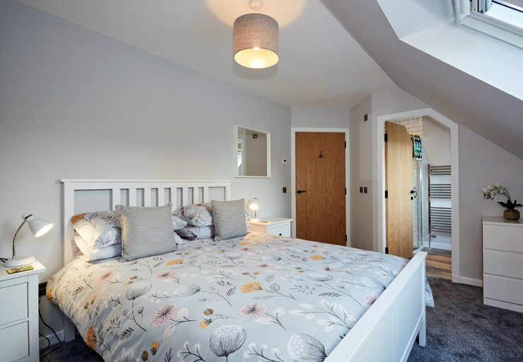 Double bedroom (king-size) with en suite shower room with WC and wash basin