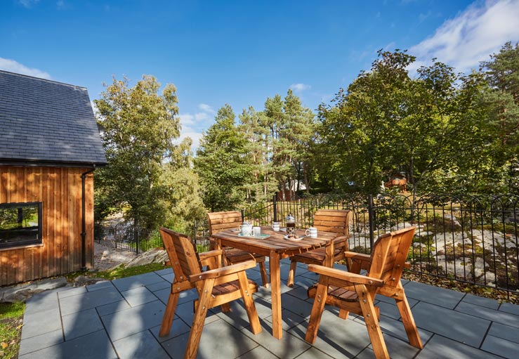 Outside, the cottage gives a sense of being in a rural location, despite being in the centre of Braemar. It is easy to find, just passed The Fife Arms Hotel, and surrounded by trees, has a private un-enclosed garden. It’s jewel in the crown is a charming, elevated patio area, providing the perfect place to sit back and enjoy the sound of the water flowing by.