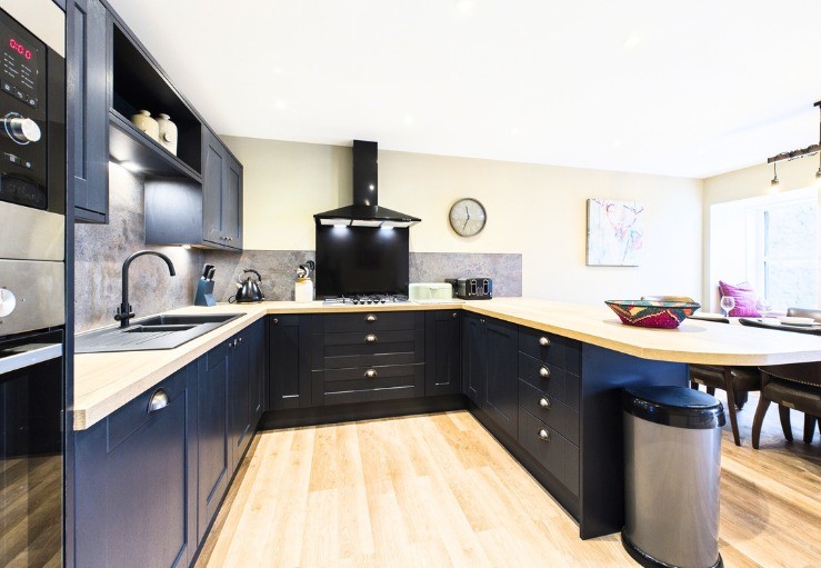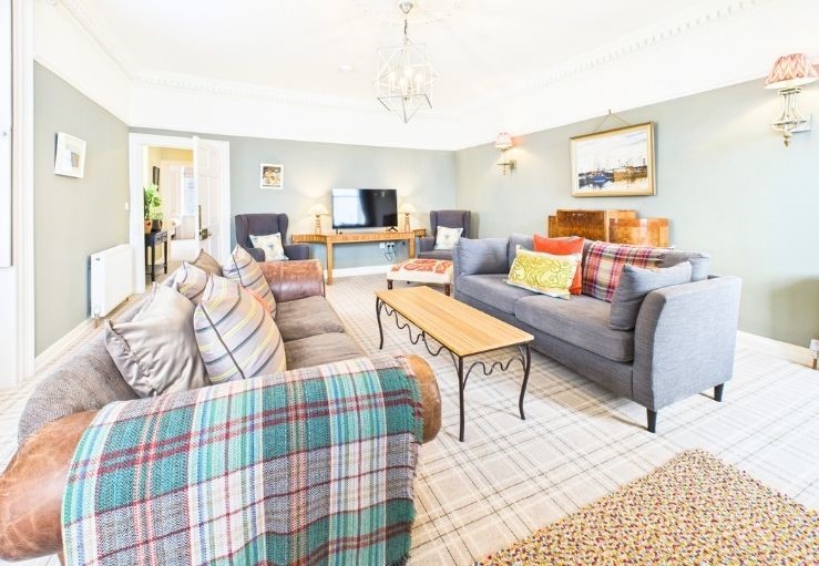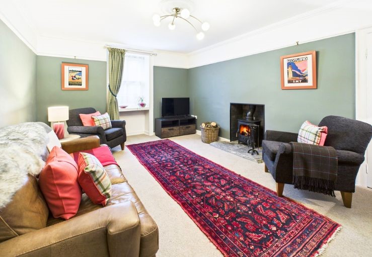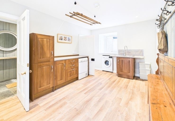 Clunie House opens to a beautiful stone floor with a utility room on the right-hand side equipped with a handy sink, washing machine, tumble dryer and drying rack for family and pets to brush off after sandy strolls. There’s also ample fridge space to keep your picnics, ready for a day spent at Banff beach.