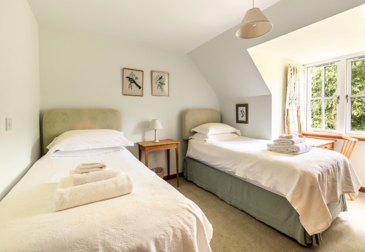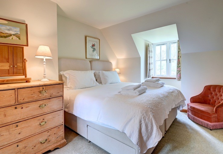 The open-plan sitting and dining room features bright colours influenced by the Grampian Highlands and an open fire, keeping the room extra cosy. This room also features Welsh dressers, a large dining table, and plenty of space to relax by the fire. Also on the ground floor is a neat WC.