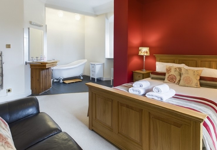 Master double bedroom with free-standing bath and wash basin