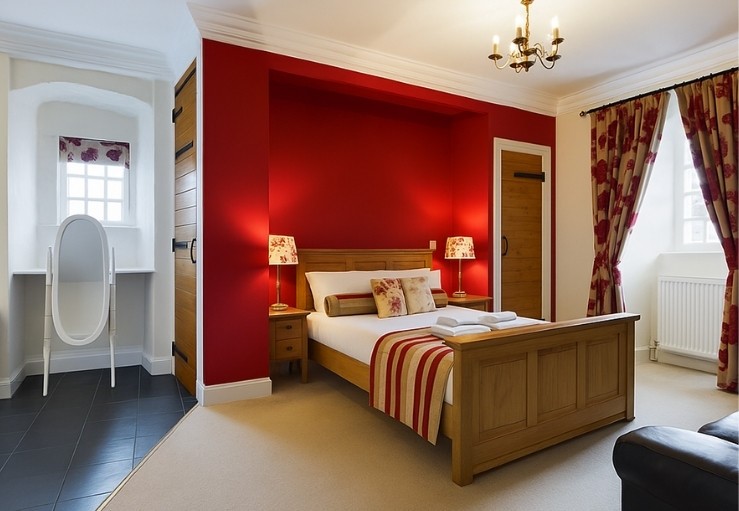 The accommodation is arranged over four main floors and two tower rooms, accessible by spiral stone stairs. The ‘Great Hall’ on the first floor, with its antique pine panelling, cosy window seats and wood-burning stove provides a comfortable and inviting space for relaxation and entertainment, complete with a TV and DVD player.