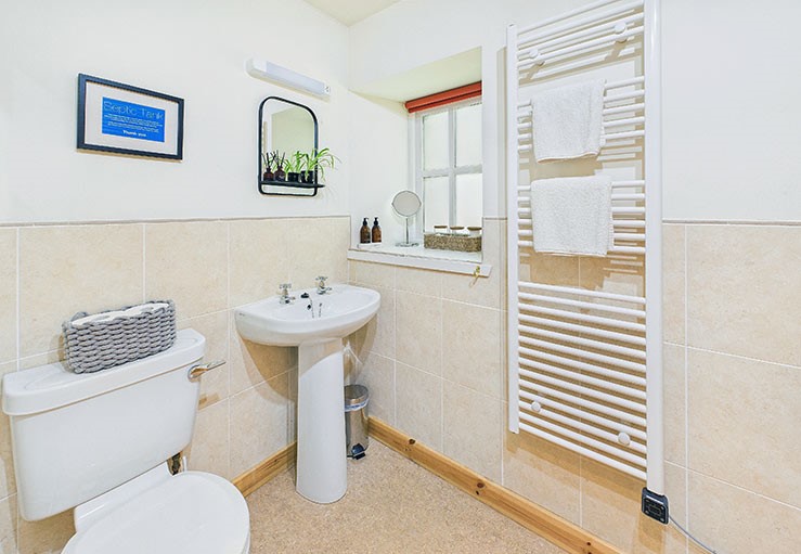 Rowan Cottage is serviced by a bathroom equipped with a shower, washing machine, tumble dryer and heated drying racks.