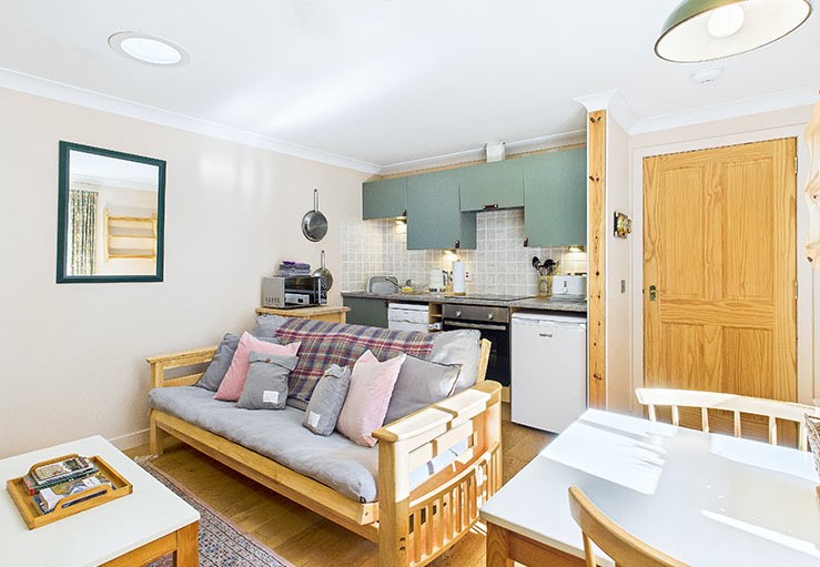 The garden area to the front and right of the cottage is for guests’ use, and while this isn’t closed off for dogs, the space is perfect for perching on one of the handmade larch benches and gazing at the ever-changing, uninterrupted skies.