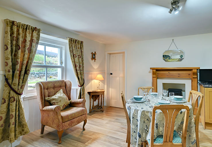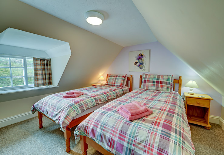 Outside, the croft’s former farmland is now a spacious grassy garden, open on one side. While the single-track road sees very little traffic, care should still be taken with children and dogs. Beyond the cottage, the road winds further up the glen before ending, ensuring peace, seclusion, and only the occasional passing sheep or deer.