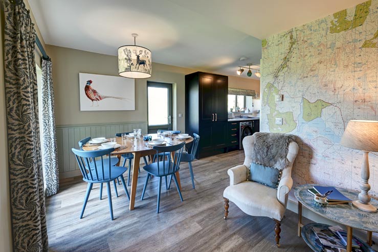 This is partly open plan to the appealing sitting room with its wood-burning stove radiating warmth and charm throughout the whole of the interior. Plan adventures with the giant map on the feature wall. Large windows showcase the garden, accessible directly from the dining area.