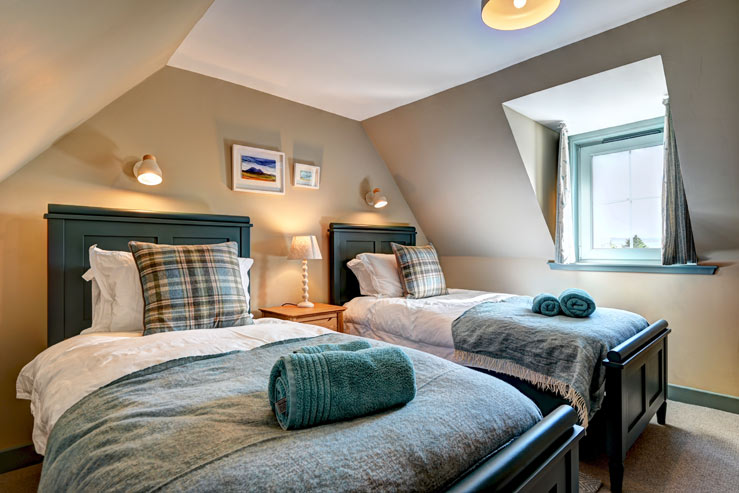 With a cosy double bedroom and shower room on the ground floor, the cottage caters to all, including those with limited mobility. Upstairs, you can choose from two stylish twin bedrooms with roof windows that share a bright landing and another shower room, complete with heated towel rails for added comfort.