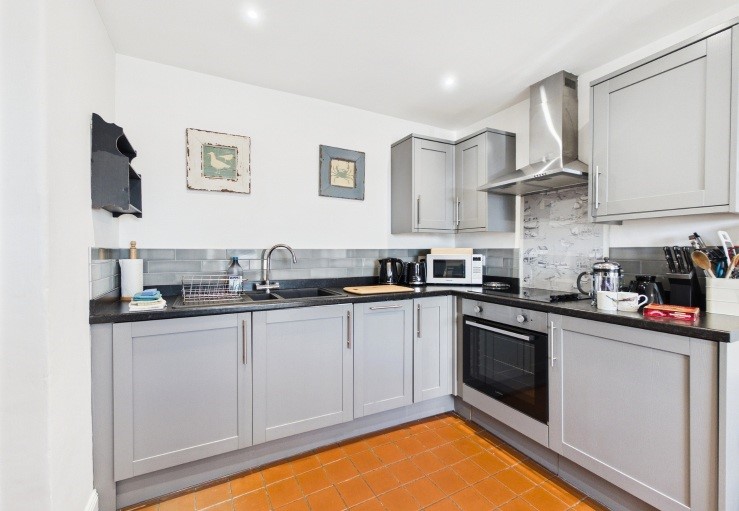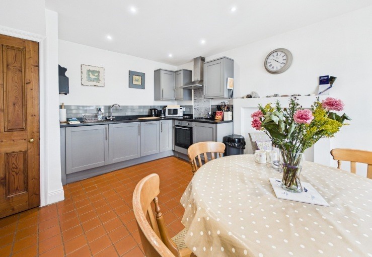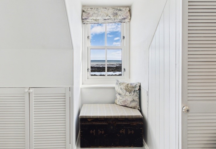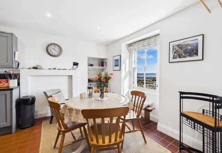 At the heart of the house is the charming sitting room where the comfy seating has been positioned so that the wonderful sea view can be appreciated at the same time as the wood-burning stove. The stylish new kitchen is well-equipped with everything easily to hand and more captivating views can be admired from the dining table during meals.