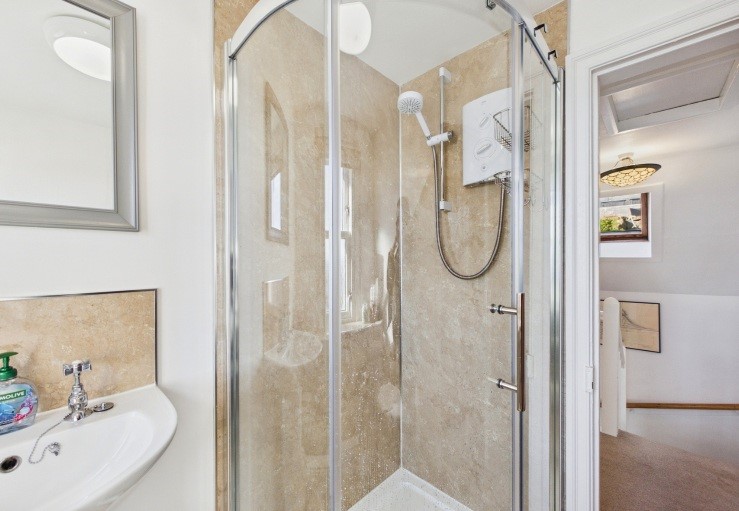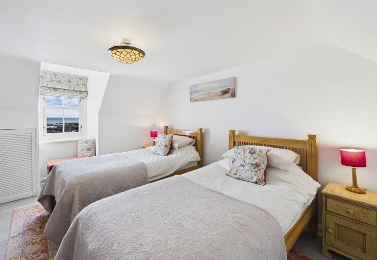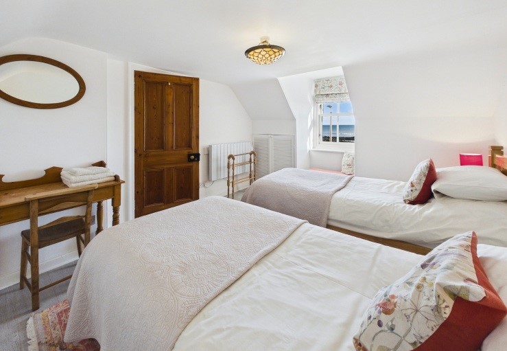 Upstairs are two attractive bedrooms, a double and a twin, that both have quite breathtaking sea views and a shower room with a walk-in shower.