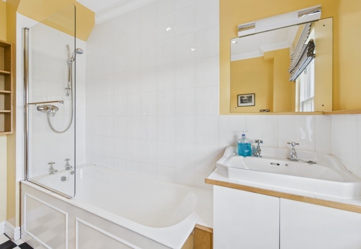 Bathroom with bath/shower, WC and basin