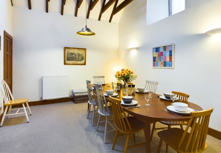 At the front of the house, in the homely sitting room there is plenty of comfy seating, exposed stone feature walls and even a piano. Meals can be enjoyed together in either the lovely wooden beamed, double height dining room or the more informal dining area in the bright and airy kitchen.