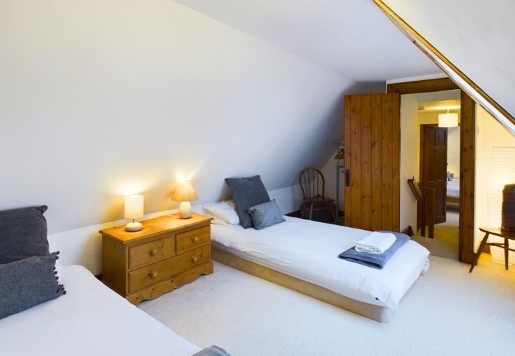 At the entrance to the house stable doors open up into a handy utility room that houses the laundry facilities and upstairs are two twin bedrooms, one of which is more suited to children as it has low beds and coombed ceilings.