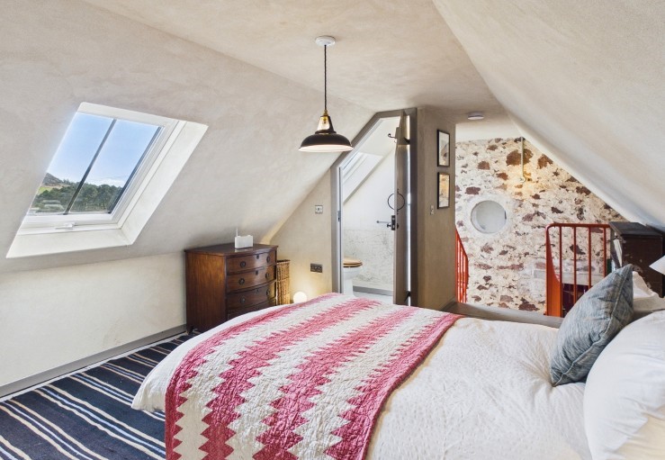 Ascending the stairs in the kitchen, guests are brought to the first of two double bedrooms spacing a small double bed and convenient ensuite WC.