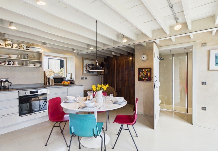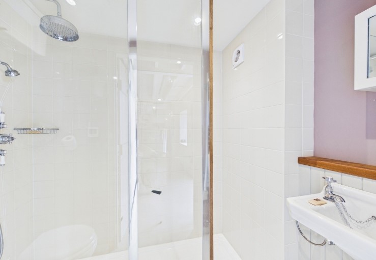 East Barn boasts spacious rooms, cosy interiors, brilliant views, as well as a private garden area. Entering East Barn, you’re welcomed by underfloor heating, a spacious kitchen and a handy shower room and WC. The kitchen is neat and well-equipped with laundry facilities tucked away behind wooden panels.