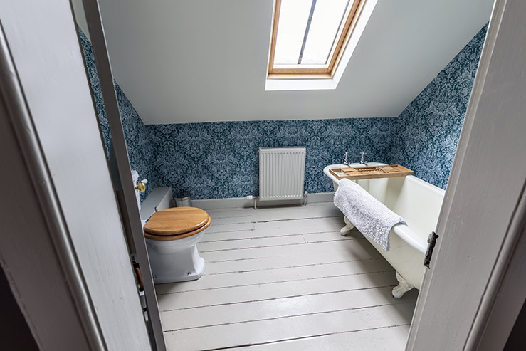 Upstairs there are three bedrooms that are all generous in size and beautifully furnished. The principal double room has a super king-size bed and still has enough room left over to host a small ceilidh! The twin room, in which the feature fireplace has been retained, is also incredibly spacious. Finally there is a ‘family’ room, with a double and a single bed, so the house is suitable for all sorts of party configurations. There is also another light and bright bathroom that has a lovely freestanding roll-top bath. With oil-fired central heating complemented by open fires and wood-burning stoves, the house is snug and warm in all seasons.