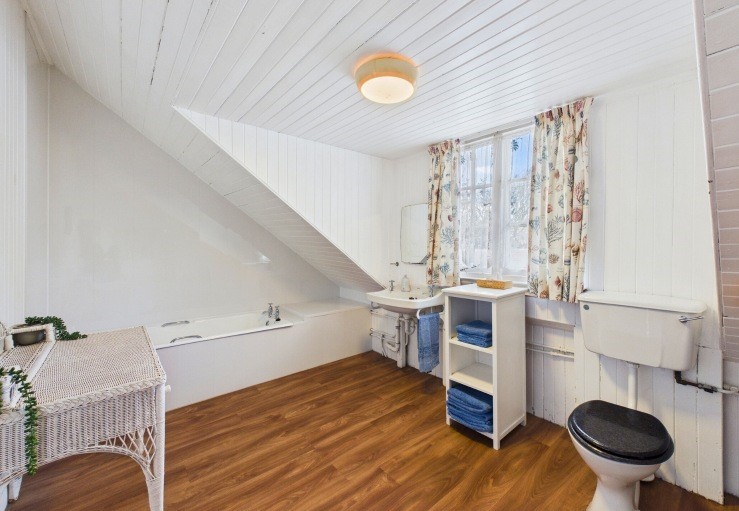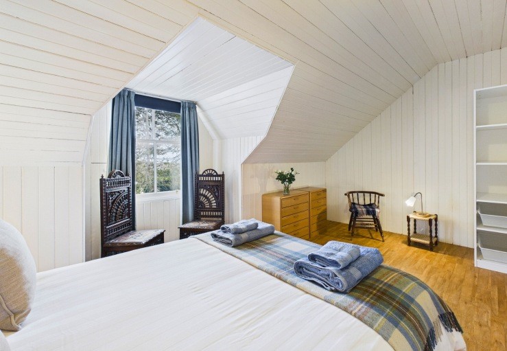 Upstairs, Mossdale boasts two double bedrooms, both with king-size beds and a twin room, ideal for kids. Both double bedrooms hold beautiful views out to the Solway Firth beyond Rockcliffe Beach. A large bathroom serves guests upstairs.