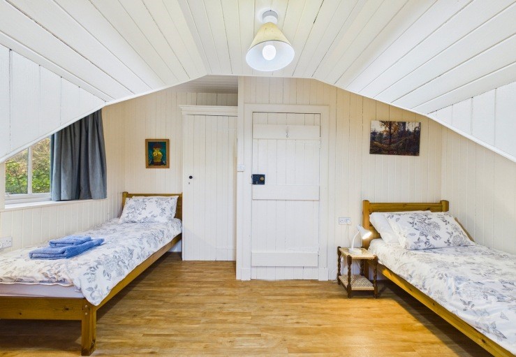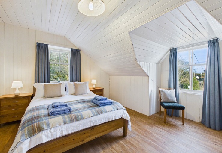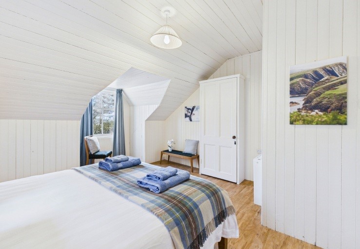 Mossdale features ample storage space, a well-equipped kitchen, and a bright, open-plan dining/sitting room with large east-facing bay windows. Evenings at Mossdale can be spent cosying up by the wood-burner, gazing out towards the coast from the picture windows, or stargazing under the uninterrupted sky. A shower room with a WC can also be found on the ground floor.