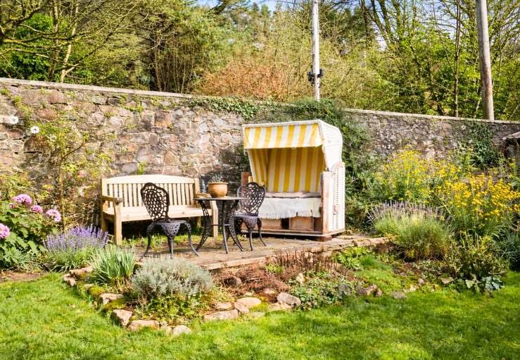 Relax in the private, enclosed garden, accessed from the open-plan dining room. Enjoy dining al fresco on the outdoor seating, watching the dog run around, and cosying up in the Baltic beach basket, all to a backing track of crashing waves.