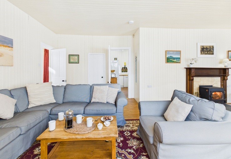 Mossdale boasts sea views throughout, a cosy wood-burning stove in the open-plan sitting room/dining room and ample space for lounging with loved ones after days of coastal wandering.