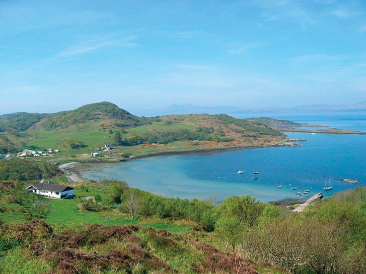 The house sits in about 30 acres of natural grounds overlooking Carsaig Bay and across to the Sound of Jura, from Scarba and the Corryvreckan whirlpool in the north, to the Paps of Jura in the south.