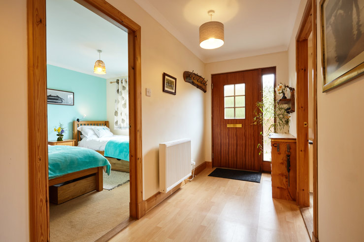 Partly open plan to the sitting/dining room, the well appointed kitchen benefits from lovely views of the garden and surrounding woodland and has all the equipment that could be required. All of the rooms are on one level lying off the central corridor with a colourful, south-facing twin bedroom, two appealing double bedrooms (one en suite) and a smart family bathroom with a bath and separate, walk-in shower.
