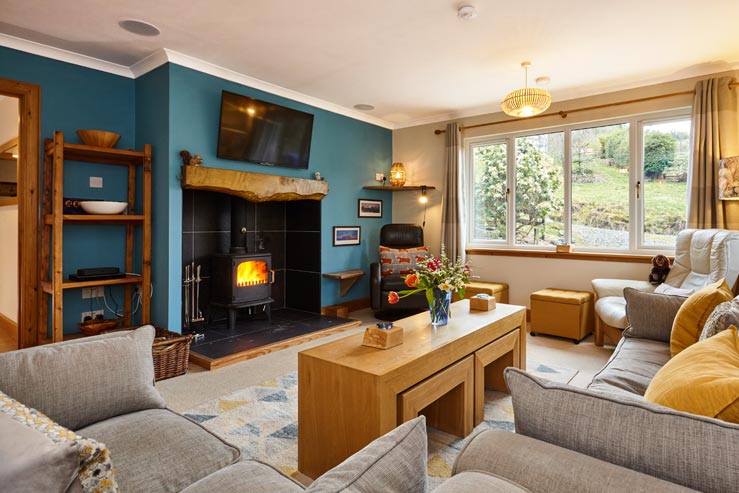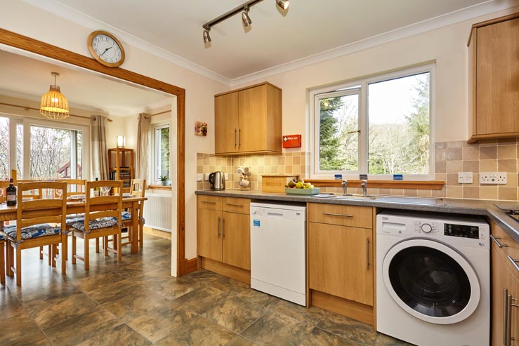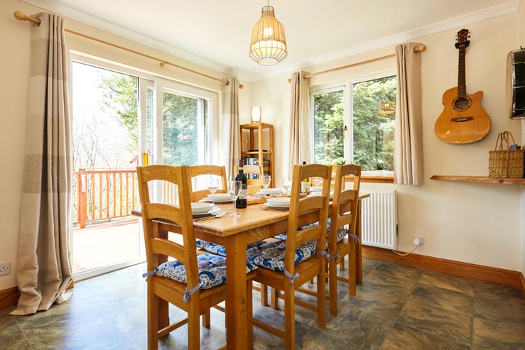 Sliding doors by the dining table open out onto the west-facing, raised deck that is great for enjoying the afternoon sunshine and, if a spot of al fresco dining is on the cards, a BBQ is provided. Wildlife lovers will have hours of entertainment sitting watching the birds and cheeky wee red squirrels that frequent the feeders on the deck and a few lucky guests may even spot golden eagles soaring overhead.