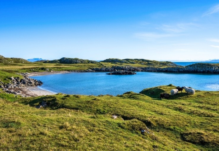 The beauty of the Isle of Coll begins before you even reach land. If travelling over by ferry, dolphins, sharks, seals and basking sharks can be found on your journey over. The peacefulness of Coll results in its abundance of animals and boat tours are also available to catch sight of the island's sea creatures. Much of western Coll is an RSPB reserve and animals such as corncrakes, otters, hedgehogs, hares and Highland cows can be found around Coll; there’s plenty of wildlife on the island for those curious and determined to find them.