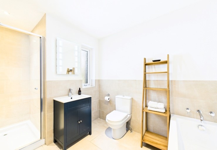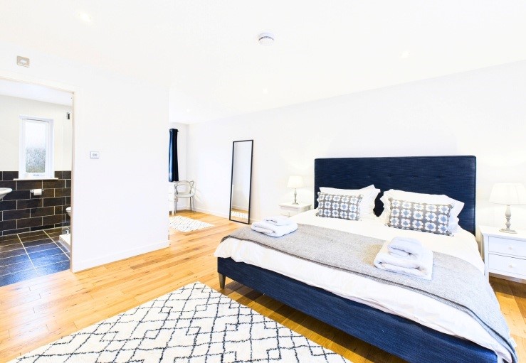 Double bedroom (super-king) with en suite bath, separate shower, WC and wash basin