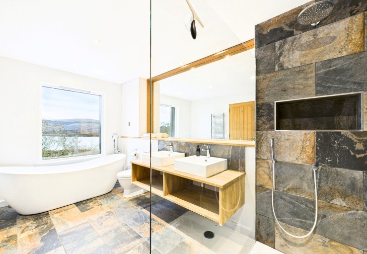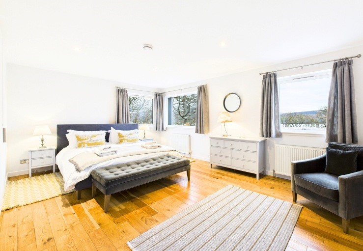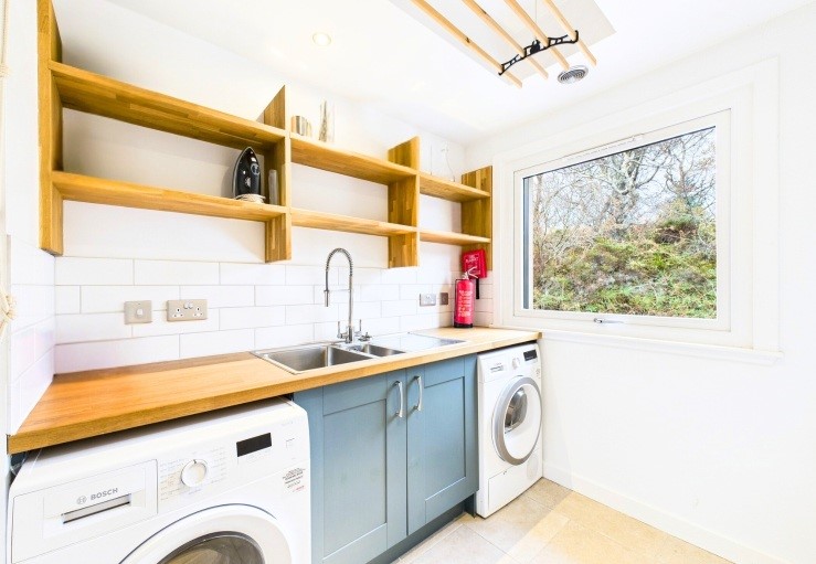 In the beautifully presented and quite vast master bedroom the loch views continue and there is a super king-size bed and luxurious en suite bathroom with a slipper bath and a walk-in shower. There are two further double bedrooms (one en suite) and a single bedroom that makes use of a family bathroom with both a bath and separate shower. Doubling as a boot room is the entrance hall with lots of handy storage and the utility room neatly houses the laundry facilities and drying racks, etc.