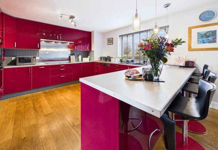 Kitchen/dining room with electric oven, induction hob, dishwasher, fridge, freezer and microwave