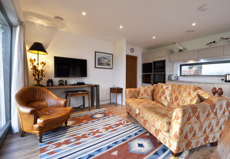 Set up perfectly just for two, this is the ideal romantic getaway with an open plan living area at its heart that has everything easily to hand. The kitchen area is set along one wall with dining alongside and comfy seating that has been positioned to make the very most of the great sea views. Open up the large sliding doors to really enjoy the view and feel like you are ‘bringing the outdoors in’.